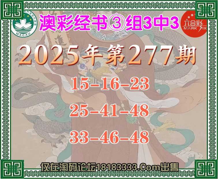 278期:『澳彩经书』 ③组3中3