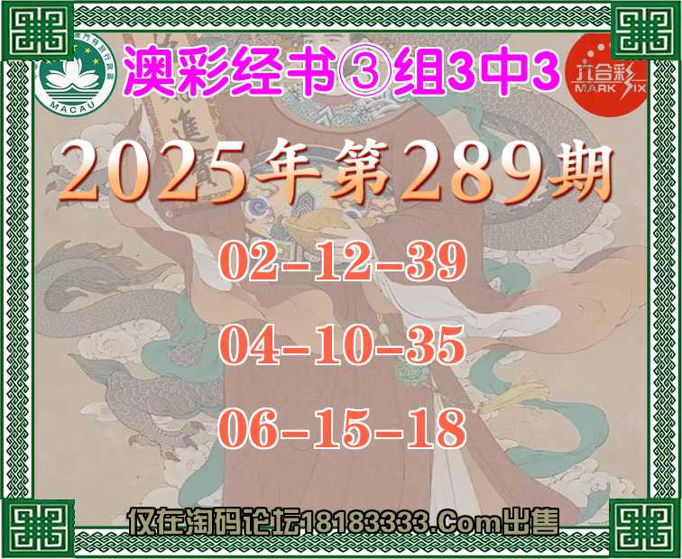 289期:『澳彩经书』 ③组3中3
