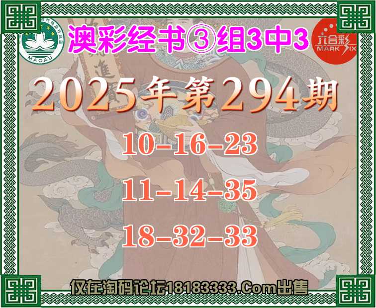 294期:『澳彩经书』 ③组3中3