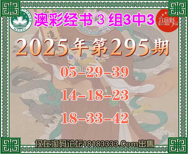 295期:『澳彩经书』 ③组3中3