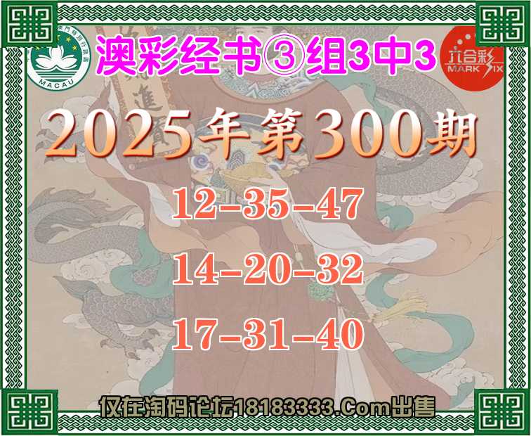 300期:『澳彩经书』 ③组3中3