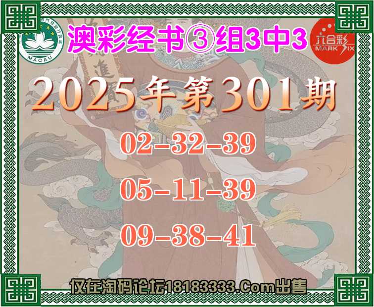 301期:『澳彩经书』 ③组3中3