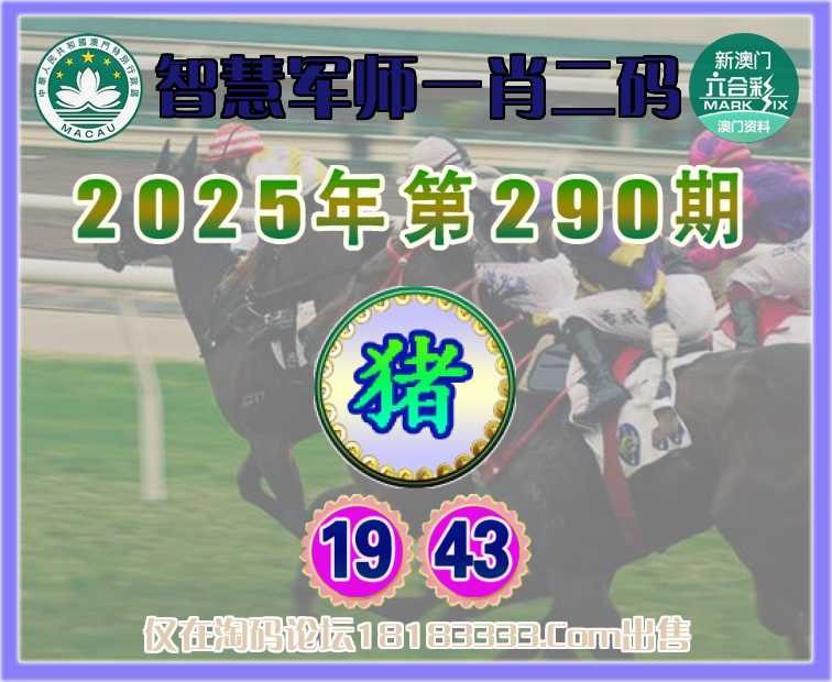290期: 『智慧军师』 一肖二码【猪】【19.43】开:猪19准