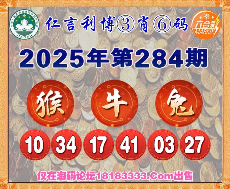 284期: 《仁言利博》 ③肖⑥码【猴牛兔】开:牛41准