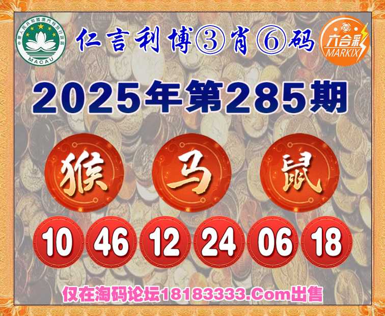 285期: 《仁言利博》 ③肖⑥码【猴马鼠】开:马24准