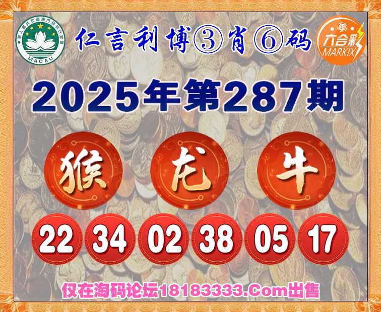 287期: 《仁言利博》 ③肖⑥码【猴龙牛】开:猴34准