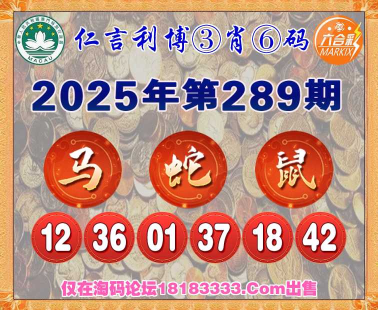 289期: 《仁言利博》 ③肖⑥码【马蛇鼠】开:鼠42准