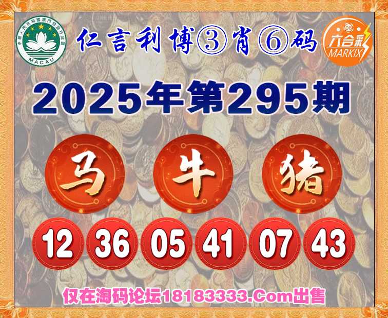 295期: 《仁言利博》 ③肖⑥码【马牛猪】开:牛05准