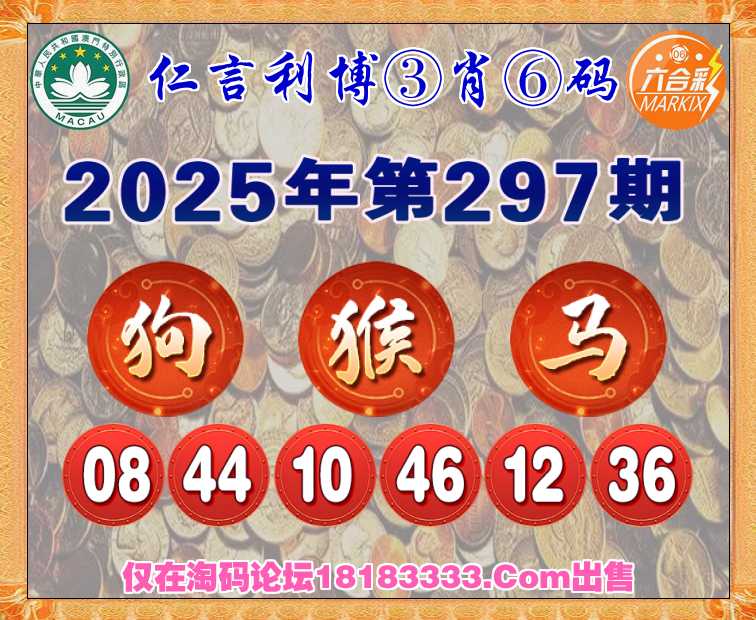 297期: 《仁言利博》 ③肖⑥码【狗猴马】开:狗44准