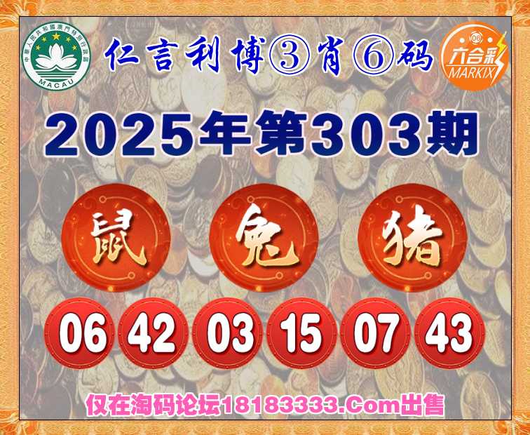 303期: 《仁言利博》 ③肖⑥码【鼠兔猪】开:兔15准