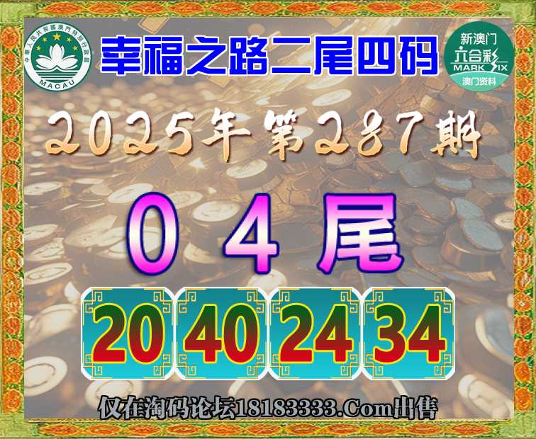287期:『幸福之路』 二尾四码【04尾主:20.40.24.34】开:34准