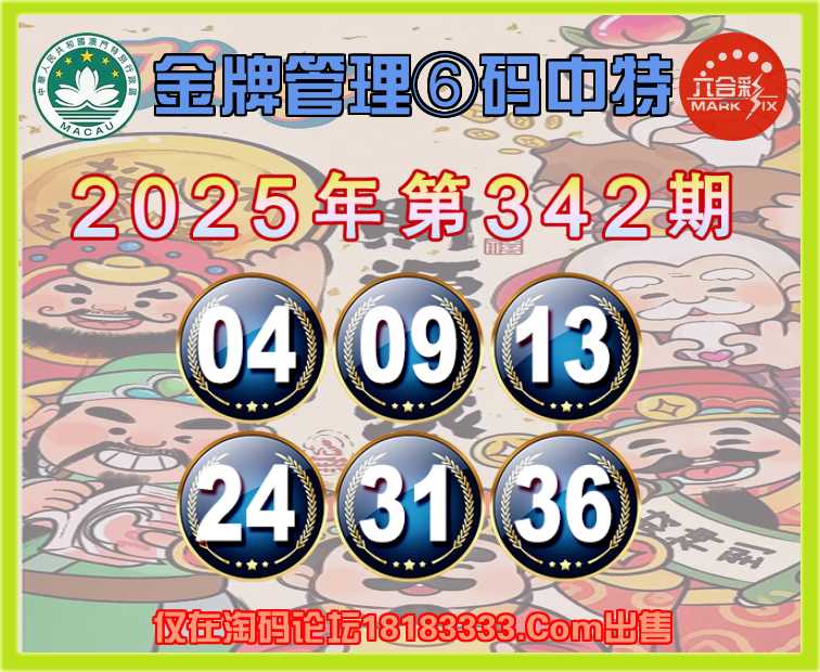 342期:『金牌管理』 ⑥码中特【04.09.13.24.31.36】开:04准