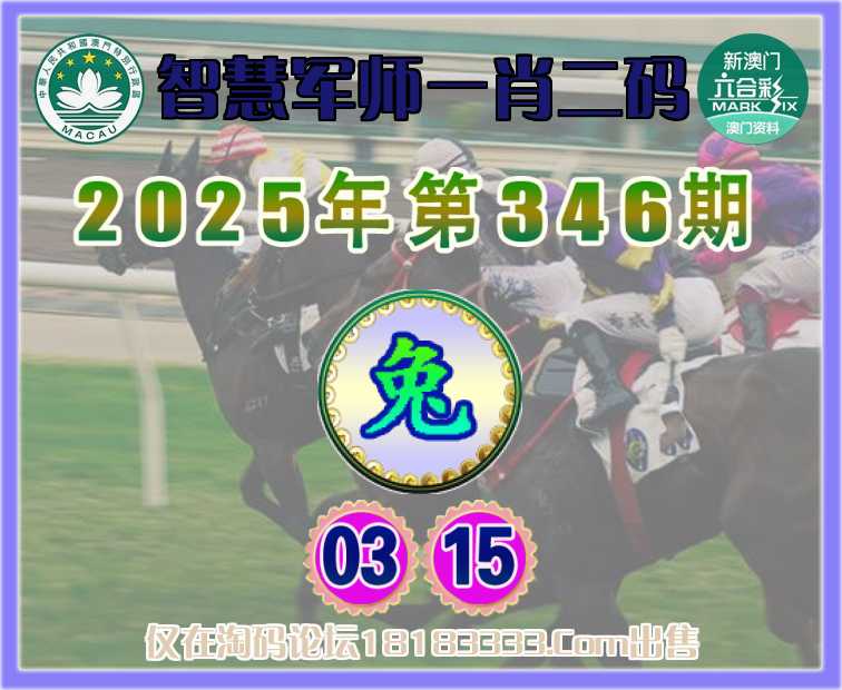 346期: 『智慧军师』 一肖二码【兔】【03.15】开:兔03准