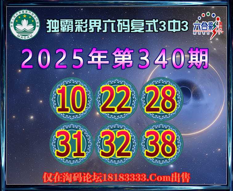 340期:【独霸彩界】 六码复式3中3