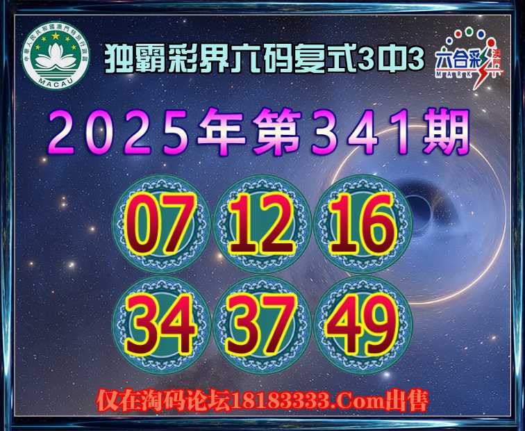 341期:【独霸彩界】 六码复式3中3
