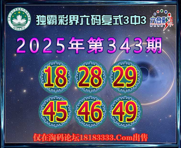 343期:【独霸彩界】 六码复式3中3