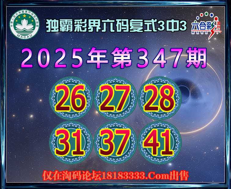 347期:【独霸彩界】 六码复式3中3