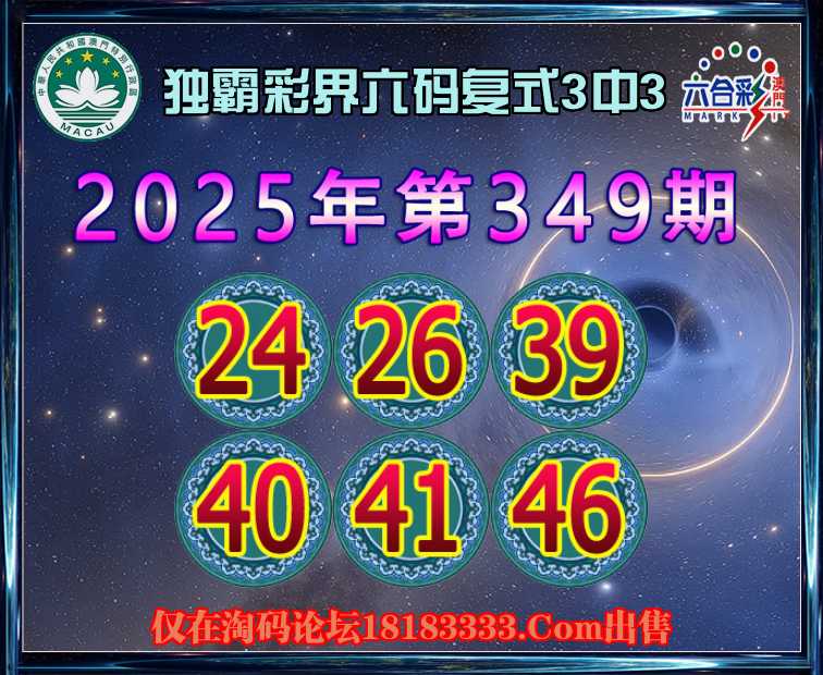 349期:【独霸彩界】 六码复式3中3