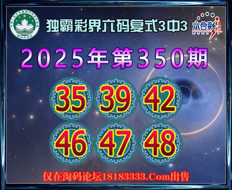 350期:【独霸彩界】 六码复式3中3