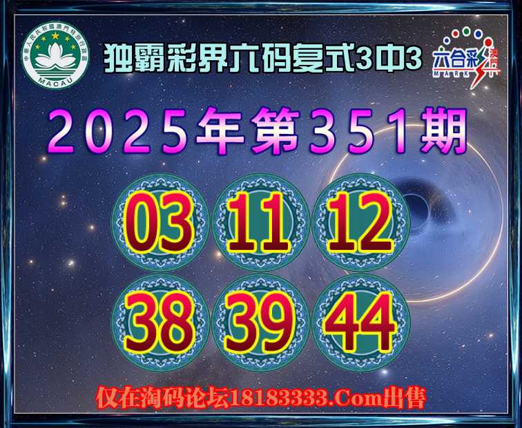 351期:【独霸彩界】 六码复式3中3